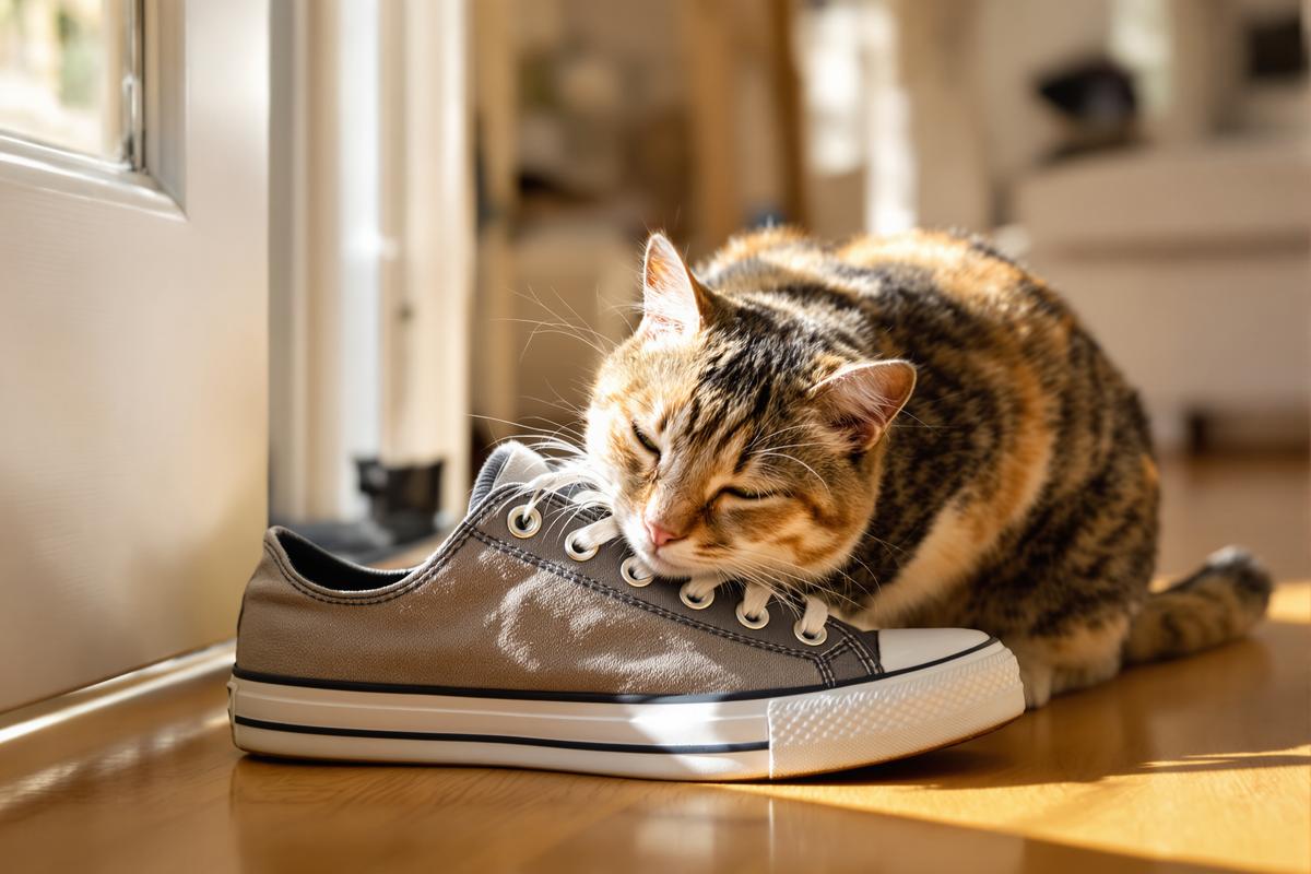 Si votre chat se frotte régulièrement contre vos jambes au retour du travail ou s’endort sur vos chaussures, ce n’est pas un hasard. Il cherche à recouvrir les odeurs étrangères par la sienne, et inversement, à se rassurer en retrouvant votre odeur familière.